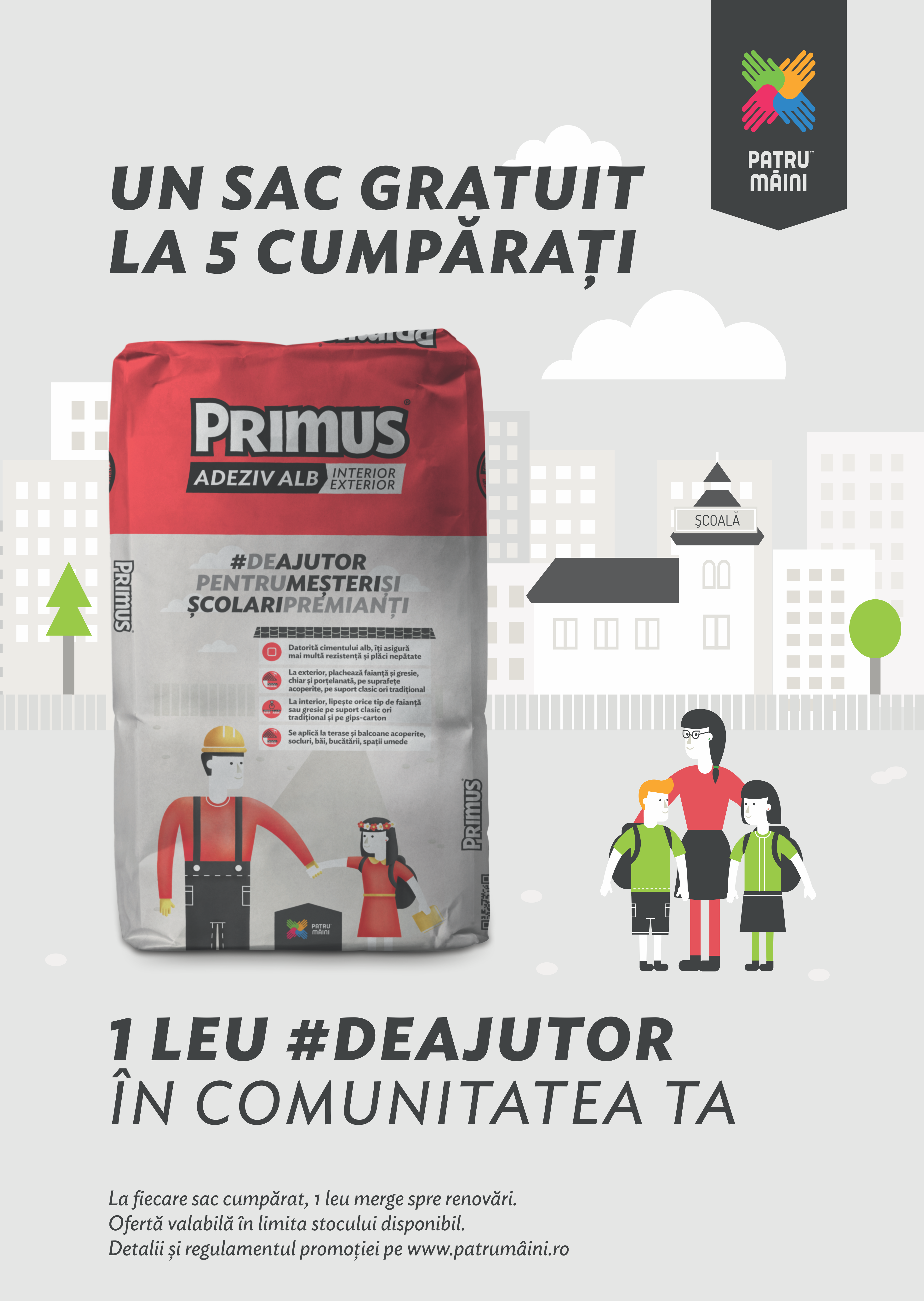 Promotie: 1 sac GRATUIT de Primus Adeziv Alb Interior-Exterior la 5 cumparati!