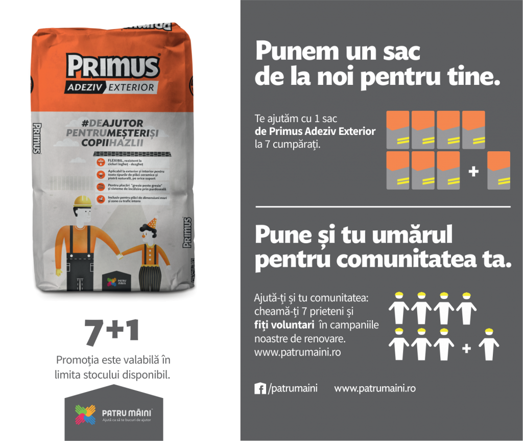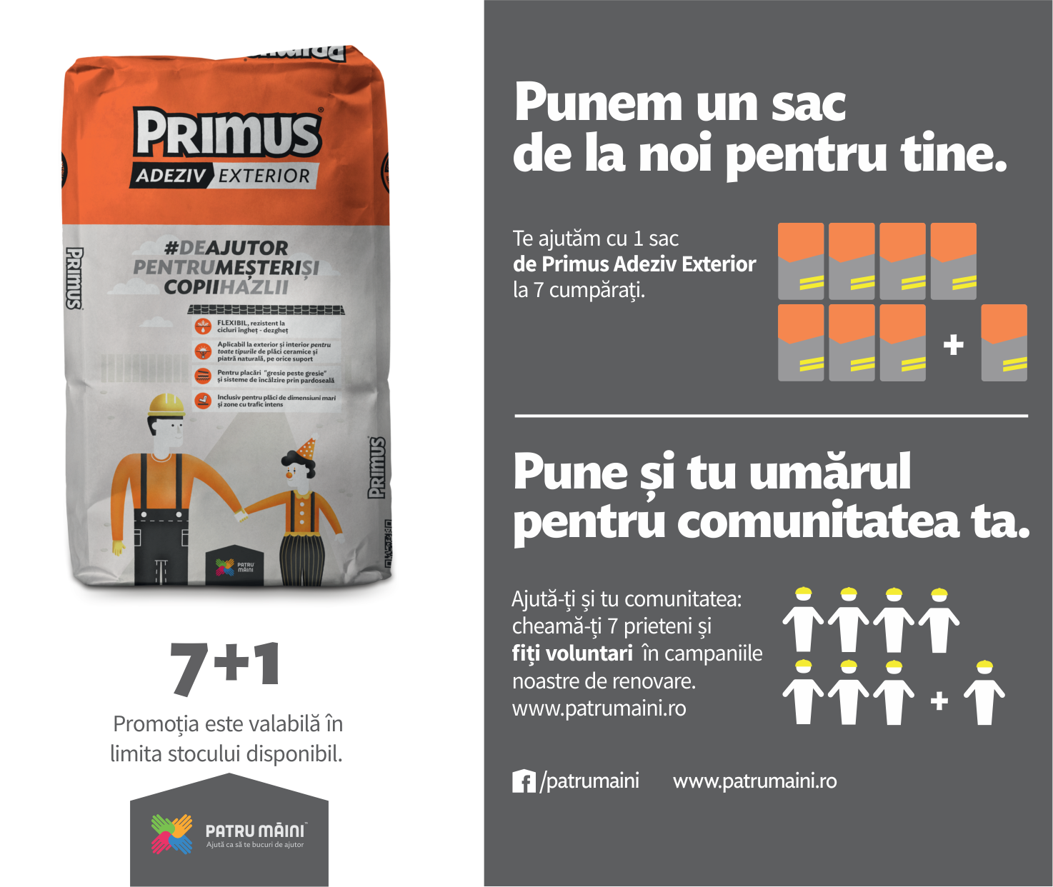 Promotie: 1 sac GRATUIT de Primus Adeziv Exterior la 7 cumparati!